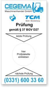 Regelmäßige Prüfung von Flurförderzeugen mit Kraft betriebenem Fahrwerk nach BGV D 27 § 37 (Rechtsgrundlage).